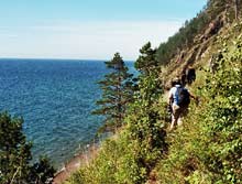 Die Realität war eine andere: Die Annahme, dass das Wochenende auf Sonnabend und Sonntag fällt, erwies sich schon mal als falsch. Erst fünf Tage arbeiten! erklärte uns Natascha. Die Arbeit ruhte demnach erst am Dienstag. Beim "Circle up" am Montagabend erfuhren wir, morgen wandern wir nach Listvjanka. Da ungewiss war, ob wenigstens die Rückfahrt per Boot sicher ist,blieben Martina und ich lieber im Lager. Wir wanderten in aller Ruhe den Trail entlang und ruhten uns an einem nicht allzu weit entfernten Strand aus.